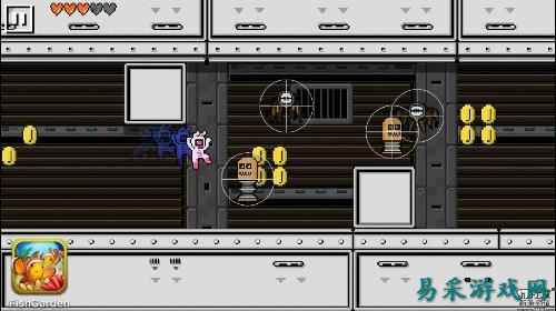 在游戏的路途中,你会看到金币,获得金币可以购买道具来帮兔子前进加速或者把尖刺去掉,但是去掉尖刺要3800个金币,难度非常高,必须要多刷几次游戏才行。值得一提的是游戏无关卡其实难度并不高,最难的关卡可以说是尖刺的关卡,玩家可以选择多刷其他四个关卡然后购买道具玩尖刺关卡。每个关卡的最后会出现BOSS,BOSS的生命值比较高,需要多打几次,兔子被BOSS打到或者碰到也会耗损生命值,所以打BOSS不仅要灵活移动还要快速释放子弹。