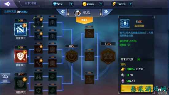 值得一提的是,游戏在对战的过程中还具备有断线重连以及补人机制,在玩家断线后30秒若没有重连回游戏将会有新的匹配玩家直接匹配进该局战斗,虽然该设计有可能会让玩家匹配到“坑爹局”,但是此举保证了玩家在战斗过程中双方人数的平衡性。 在手游《末日机甲》中机甲的养成主要是围绕着研发科技而展开的,玩家能够通过副本以及对战来获取各种素材用于提升研发度。而游戏中的机甲解锁则需要通过图纸兑换来实现,想要在游戏中使用所有的角色还是需要花费一定的游戏时间方可实现。