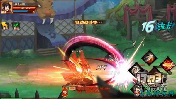 本作的战斗采用横版、虚拟摇杆行走、按键释放技能的方式进行,战斗的技能效果还算不错,画面也较为绚丽,但是人物的动作却显得比较僵硬,打击的过程也算不上非常流畅,反而经常会出现打击落空、动作跟进缓慢等令人焦躁的问题,打击感算不上强烈,在打击反馈上给玩家的爽点还不到位。