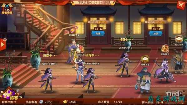 虽然本作在战斗的制作上有些差强人意,但是本作的特色玩法却有着一些独到之处。 酒馆玩法,酒馆是本作的亮点之一,通过主线任务玩家可以获得一座破烂的酒馆,在经过修理之后就可以正式投入运营啦。酒馆的开张不仅会为玩家带来丰厚的收益,更能为玩家带来不少的乐趣。酒馆中会迎来各种各样的客人,有些是来吃酒的,有些是来住店的,有些是来赌博的,有些是来护送的,还有来找你玩的。他们的作用各不相同,比如来护送的,玩家可以对其进行投资,经过一段时间后会获得金钱乃至元宝的收获,而找你来玩的则是打发时间的了,这其中有猜拳的,有转转盘的,会有各种各样的惊喜等着你。
