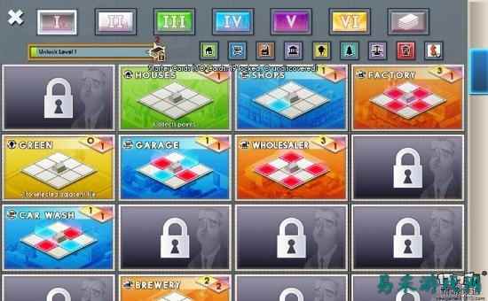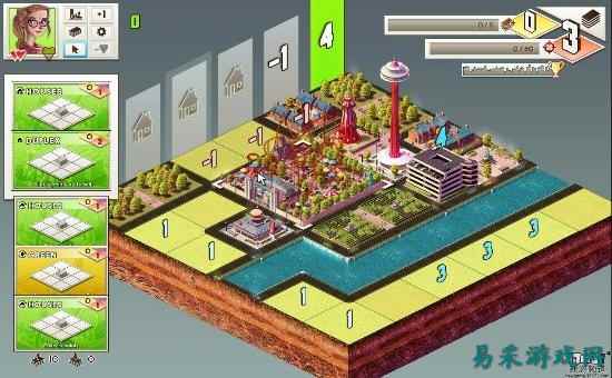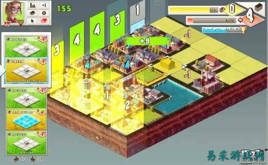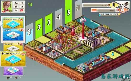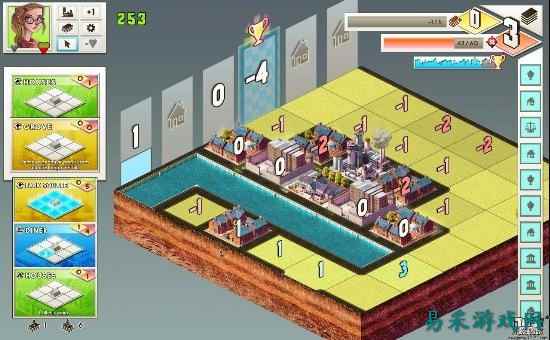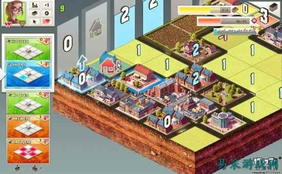 比如住房在学校相邻的上下左右方位时,对住房有积极的影响,可以使得住房等级(住房等级初始为0)将加1;而工厂与学校的作用正好相反,当住房在工厂相邻的上下左右方位时,住房等级将减1。从最左纵列开始,当最左纵列里的住房等级总和达到3时,最左纵列会消失并开启最右的纵列,消除的纵列会计入总分,影响最后攻略城市的星星数量(最优为3星)。新开启的最右纵列可以使得玩家继续游戏,继续建造城市,直到玩家最后消除标有奖杯的纵列项,游戏闯关成功,可开启下一城市。
