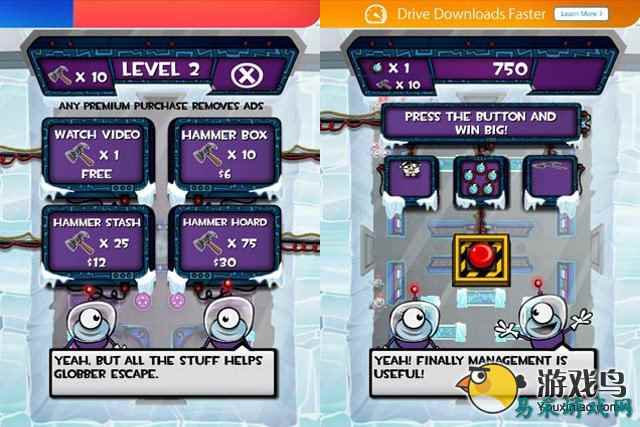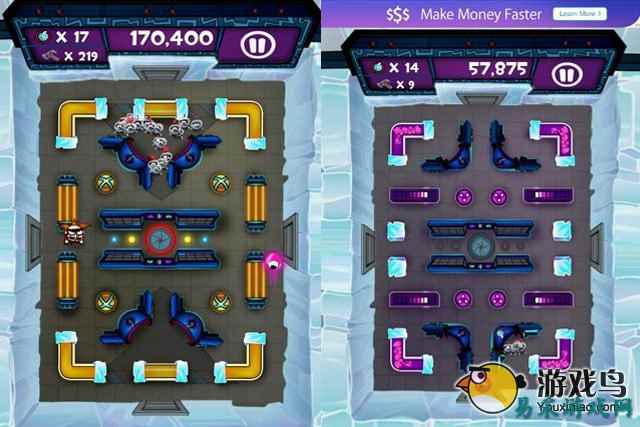 由开发商Robomodo LLC给我们带来的《水滴大逃亡》(Globber's Escape)是一款吃豆躲避类的休闲益智游戏,在这款游戏中,我们将要扮演这个神奇的粉色水滴,在疯狂科学家的实验室里帮助一些机器豆(其实我也不知道那是啥)逃脱。? 游戏画面与音效:★★★☆ 游戏刚开始用了一组图片来介绍了基本玩法内容,其实开发商在iTunes里面也说了,这也是一款向《吃豆人》致敬的游戏,不过比起这么多年的吃豆人,本作还是有自己的一些特色和玩法的,当然画面和音效也要比上古时代的《吃豆人》精致得多。 游戏在一张实验室的地图上展开,这个粉色的小水滴有了自己的意识,它不愿意助纣为虐,同时还想帮助机器豆逃脱,但是疯狂科学家可不会让它轻易成功,在实验室中安排了一大串的敌人和机器人,而本作中也没有什么闯关的概念,也就是只有无尽模式,看看你究竟能够玩多远。 游戏操作与玩法:★★★★ 游戏的操作自然是简单的可怕,点击屏幕就是控制这个水滴的运动了,在游戏中,那些机器豆一般会在地图的四个角中出来,玩家必须尽快将它们收集起来,收集一定的数量就会出现一个能量球,这也是我们必须要收集的,而能量球收集到一定的数量就会开启新的实验室,但别高兴的太早,其实这些实验室的布局都是一样的,变化的只是一些配色,不过敌人也更加强大了。《水滴大逃亡》评测 在这款游戏中,敌人有两个,一个就是不时冒出来的科学家,他们平时一般在游荡,但是看到主角的时候就会冲过来,被他们抓住也就游戏结束了;另外一个大敌就是从地图中间冒出的强悍机器人,其智商极高,会一路跟着你,而且速度很快,让你几乎没有任何喘息的机会。 还好开发商也给了我们一定的反击机会,那就是偶尔会出现的黄色道具,拾取它之后主角会产生一段时间的无敌状态,变成黄色的水滴,发出龟派气功,而这个时候敌人的脸色完全变了,如临大敌,这时候你可以选择直接冲上去消灭敌人,或者静静地等待冲击波的扩散,不过这段时间有些偏短。 游戏可玩性:★★★☆ 本作只有无尽模式,所以开发商也只好在“复活”上下文章了,当粉色水滴被抓住之后,是一个被冰冻的状态,这时候可以用锤子来复活它。复活的锤子,在游戏中可以获得,但数量不多,刚开始复活只需要一个,后面就会越来越多,这当然也是提示你要内购了。如果游戏结束的话,还有一个水果机可以抽奖,奖品可能是分数或者送锤子。 游戏总评:★★★★ 推荐玩家: 推荐理由:经典吃豆躲避玩法、操作简单而刺激 总体来说,这款免费的《水滴大逃亡》还是做出了特色,游戏的玩法简单,节奏很快,玩起来相当刺激,但游戏到后期难度偏大,那个疯狂的机器人不时就出来锤死你,逼着玩家买锤子,而且没有闯关模式等其他模式的话比较容易玩腻,也就适合偶尔打发下时间,锻炼下手指和反应。 |