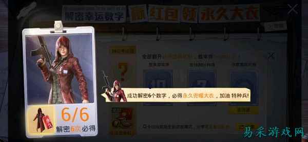 和平精英30日解密幸运数字是什么?2020年12月30日的幸运数字是什么?又到了每日解密幸运数字的时候了,根据今天的线索,小编已经把幸运的数字解密出来了,不知道的小伙伴快来看看今日的幸运数字吧! 30日幸运数字:32 活动期间,大家能够过一些方式去开启数字牌的,例如登陆游戏,在线20分钟就可以了,需要就能够获得碎片的,有几种的任务来完成获得翻牌子的; 注意的是,在登录游戏中,20分等待就可以翻开牌子了,是系统随机的,需要碎片的数字也是大家自己选择的; 还有的话,每天的系统会设定一个系统数字,将线索给出一定的提示,例如线索就是全新的团竞模式,分享给其他人,可以查看到线索图的,能够获得幸运数字线索了,判断出里面的一些对应的数字,从而成功就可以解密开来的。 玩家翻出自己的数字和幸运数字,就能够解开成功了,累计6次成功的解密,可以从中获得初心大衣领了; 举个例子来说,通过线索判断出自己的幸运数字,许多的碎片数字就是每天都不一样的,利用召集到一些的数字,等着每天都会更新的。 |