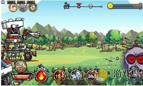 卡通防御战4游戏评测已经为大家准备好了,小白人依旧担当了本作的主角,这回它要成为一名不折不扣的飞龙猎手,在换取和平的同时也不忘了让自己的腰包鼓起来,而游戏本身的卡通画风也有了一些进步,至于到底好不好玩就让我们来一探究竟吧。 其实《卡通防御战》系列一路走来变化最大的无疑就是画面了,从原来不入流的渣渣渐渐发展到现在的业界中上水平,特别是配色与线条勾勒已经具备了相当水准,那种蹩脚的感觉已经明显降低。不过当游戏进行到一定阶段时,凌乱不堪和眼花缭乱的缺点还是暴露了出来,并且技能的动态表现也少了几分流利。 第四代同样是以猎龙为故事主题,简单介绍事件的来龙去脉之后,在凌乱的画面下开始了一段略显凌乱的玩法教程,归纳来说也还是围绕攻击和技能释放来进行这样一场反击保卫战。尽管如此,初期玩家还是要与一些小黑人以及奇奇怪怪的生物兵戎相见,而我们使用的则是一辆自制战车,上边搭载了一名射手、一名投掷手和一个炮塔,玩家全程只需要控制炮塔即可。 操作方面比较简单,只要按住屏幕划动就可以让炮弹朝着对应方向发射,战车上的另外两名小伙伴会自动攻击。当然游戏可不会让你的双手闲着,开发商在战车上加入了一系列的机关和武器,点击画面下方的图标可以触发落石、火焰喷射、吸血、机械士兵召唤等有趣技能,同时还有机会触发一些加血、冰冻等被动技能,就丰富性和观赏性来说要比前作有不小的提升。 这里的每一道关卡都采用了分段设计,当消灭完一波敌人后会进入下一个场景,我想经常接触这类游戏的朋友并不会陌生,有趣的是 BOSS 战还加入了 QTE 机制,你需要记下系统提示的图标来施展接下来的 QTE 攻击。其实说到这里就不得不谈谈游戏的难度设定了,笔者认为这方面的制作还是比较失败的,主要体现在战车生存能力的不足让游戏难以为继。 游戏持续性欠缺并不能单单归咎于敌人如何犀利、数量何其多,回血机制的吝啬才是最令人不爽的地方。玩家可以通过触发回血技能和使用相关道具来回复战车的生命值,但是经济方面的问题就来了,资金上明显的入不敷出只会让不愿意花钱的玩家止步不前,虽然加入了一些赌马和钓鱼玩法让玩家的财富积累速度得到了些许提升,但免费游戏的特点你我都懂的。 其实说到这里大家或许已经明白了这款横版塔防的主要优劣所在,或许是在开发商尝试过收费下载后感觉收入并不理想,导致这款续作一推出就转投到了免费阵营,虽然游戏整体进步明显,但是想深入体验趣味所在那还是得备足银子,对技能、道具等各方面进行提升和购买,对技巧的考验则被排在了第二位。 #_2458391_# |