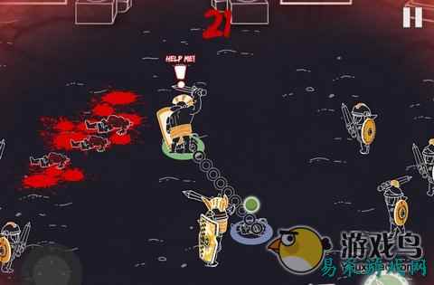 由游戏开发商Featherweight Games所推出的《锁链搏杀》(Enterchained)是一款以古罗马时代为故事背景的格斗游戏,游戏中玩家将穿越回到古罗马时代成为一名角斗士,在血腥的古罗马竞技场中挥舞着巨剑进行搏杀,以求生存下去。整个游戏的背景以黑色为主色调,鲜红的鲜血充斥着整个场景,令整个游戏的气氛显得血腥而惨烈。 游戏玩法与操作:★★★★ 在游戏中你并不孤单,你将与一名电脑控制的战友被一条粗大的铁链拴住,这条铁路会互相牵制对方的行动行动,玩家必须控制好与战友之间的距离,保持一致的步伐,互相配合干掉所有的敌人。这条铁链虽然会对两人在移动上进行限制,但同时也是一件不错的进攻与防守的道具,玩家可以通过这条锁链制定各种战略,例如两人还可以利用锁链将敌人绊倒,然后迅速的将倒在地上的敌人击杀。 游戏全程采用了虚拟摇杆加虚拟按键操作,屏幕左下方为控制人物移动的虚拟摇杆,转动该摇杆就可以控制两名角斗士中的其中一名,进行移动。而右下方的虚拟按键共有三个,分别为绿色攻击键、黄色的投掷键和红色追击键,攻击键顾名思义是挥舞着武器进行常规的攻击,常规攻击只能将敌人打倒在地而无法将其杀死。而投掷键则是将武器投掷出去将敌人秒杀掉,点击追击键则可以对倒在地上的敌人补刀彻底将敌人杀死。 游戏画面与音效:★★★★☆ 本作的重点虽然是战斗部分,不过游戏画面也相当的有特色,游戏只有一个简单的场景,在纯黑色调的背景中,游戏的所有人物与场景均势通过白线所描绘,如同黑板上作画一般。我方使用蓝绿两色与敌人的黄色作出区分,红色的鲜血满溅全场与黑色的背景相映衬显得格外的刺眼,从而形成了相当有特色的剪影风格。 另外本作虽说没有恢弘的音乐来体现古罗马时代那厚重的历史沧桑感,可是游戏的音效却制作得相当的不错,整个斗兽场中刀剑相交、铁石互碰的噌噌响声全场回荡,杀死敌人后全场响起的欢呼声与掌声更是将战斗的气氛带至最高潮。而主角和战友双双倒地全场响起了“Kill him”的呼喊更是带感十足,给这个游戏的结局的悲剧多少划上一个完美的句号。 游戏可玩性:★★★☆ 《锁链搏杀》没有关卡,不过每一次开始游戏都会提供各种战斗要求,如一场战斗中使用锁链放倒多少个对手、杀死敌人的人数、通过投掷武器秒杀多少个敌人等等。每一次完成任务就会获得新的武器与装备,而下一次游戏开始后任务的要求又会比上一次高了许多。此外每一样武器与装备的特性都不相同,它们会影响攻击速度、投掷距离、倒下后重新站起的时间等等。两名角斗士的装备一定要形成互补。 游戏的整体难度不大,主要是要配合好同伴的步伐,战友之间能形成互补与有效的防御与攻击,只要两人没倒下游戏就会一直继续下去。每一波过后新出现的敌人会越来越强,各种拥有防御力的重剑士和顶过去的进攻波次越多,成就就越高,整个战斗过程紧张又刺激还是很爽的,只是长时间如此战斗下去也显得比较的乏味。 游戏总评:★★★★ 推荐玩家:喜欢古罗马竞技场题材的玩家 推荐理由:剪影画风独特、音效气氛十足 总的来手,《锁链搏杀》凭借视觉感强烈的手绘剪影风加上锁链式的竞技场搏斗,显得游戏十分的独特,爽快的战斗与气氛十足的音效也十分的出色,可惜这款游戏在内容和玩法上略显单调,只会在一个场景中来回的厮杀,杀上那么几把也许就会腻了。总体水平来说还是不错的,特别是喜欢古罗马竞技场风格战斗的朋友,还是非常推荐本作的。 #_2455973_# |