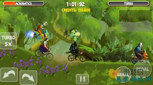 《疯狂赛车手2 Crazy Bikers 2》是一款独特的自行车竞速游戏,你必须骑得比其他选手快,同时还要做出各种特技动作,保持平衡不要摔倒,体验各种环境,包括冰山、砂地、沼泽、沙漠等等,新的物理引擎将带给你不一样的体验,这不仅仅是自行车!云集了各路妖魔鬼怪骑手的横版越野自行车赛。游戏赛道多样,骑手五花八门,玩家可以选择公主、小丑、骷髅等众多骑手中的一位来进行游戏。喜欢的朋友一定不能错过这款新奇的自行车赛哦! 那画面太美我不敢看 精美的游戏画面仿佛将大家带入了儿时的格林童话当中,丰富多变的场景有荒芜的大沙漠、郁郁葱葱的大森林、美轮美奂的梦幻城堡,大大缓解了玩家的视觉疲劳感,画面中的人物更是令人冷峻不禁,各种奇葩的搭配,又略显欢乐,神马小丑、木乃伊、公主、僵尸等组合,那画面太美西瓜不敢看。 热血四射 烘托气氛 提及到本作的游戏音效,那可谓是热血四射呐,动感十足的配乐,跟随着自行车轮胎和骑行者脚步节奏的快速飞转,代入感十足,更妙的是它在细节方面也处理的很到位,就连自信车在骑行时链条发出的吱吱响声也绝不错过,搭配上画面,将整体欢乐气氛烘托的十分到位。 经典操控 任意选择 简单的游戏操作,一共两种经典的操控模式:触屏点击和重力感应,在每次游戏刚开始的时候,大家都可以根据自己的喜好对它们进行选择,对于此类游戏,西瓜比较推荐用点击触屏来操控,因为起伏不定的道路用重力感应的话,角度不太好把控。 丰富角色 乐趣解锁 一开始木乃伊的初始角色,也许很多小伙伴都不太喜欢,西瓜身边的同事就在抱怨不喜欢,能不能换一个,这个当然是木有问题的啦,在系统中,丰富的人物角色造型任你解锁替换,前提条件是你得有钱,什么彪悍的大叔、美腻的公主、帅气的宇航员、逗趣的小丑,任你选择。 总结:内外兼修 值得点赞(7.7分) 一番体验下来,《疯狂赛车手2》无论是从画面、音效上来看,还是从内在来品,都值得点赞,不愧是《疯狂赛车手》的续作,简单流畅的操控手感,融入了丰富的挑战关卡,在于小伙伴们竞速的同时,每个关卡还融入了任务要求,多劳多得的玩法,想要多拿些金币,除了赢得比赛最好还要完成任务,喜欢它的小伙伴们,快来下载体验吧。 #_2484578_# |