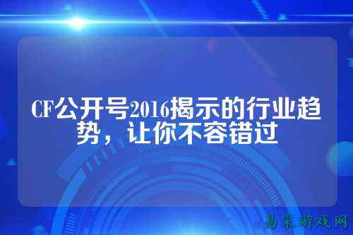 CF公开号2016揭示的行业趋势,让你不容错过