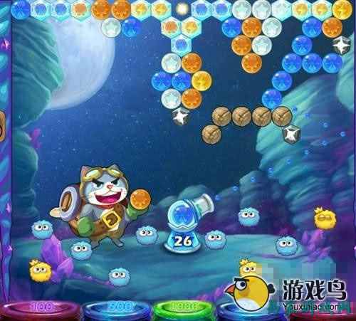一提到《开心泡泡猫》(Bubble Cat))这款游戏,很多玩家都觉得似曾相识,没错,QQ空间里就有这款游戏,只不过现在被移植到了移动端。这是一款创新性益智休闲游戏,将经典打泡泡玩法与谐趣创新完美结合。在这里,您将帮助喵星勇士追踪泡泡大魔王,解救喵伙伴、巧过难关,进行曲折又有趣的大冒险,相信你一定没见过。在游戏中我们还可以在猫咪屋里收藏不同种类的猫咪,让软妹子们欲罢不能。 #_2426546_# 游戏画面的色彩非常靓丽,场景设置也很丰富,UI的设计也比较精致细腻,清清凉凉的海底背景也给人一种舒适的感觉。打开游戏界面,首先登入加载的画面就十分清新友好,蓝蓝的颜色让人感觉赏心悦目。三只猫咪的造型也十分抢眼。看过《穿靴子的猫》的童鞋应该很有印象,而这款游戏中的猫不光穿了靴子,各种裙子裤子围巾,穿神马的都有。游戏画风十分类似于梵高的油画,从浅摊到山峦,画面的渐变衔接的十分自然,没有任何突兀的感觉。 游戏背景音乐类似于笛子吹奏出的旋律略带着一些空灵的感觉,虽说少了些劲爆刺激,但是它胜在悠悠转转,让你在游戏的过程中身心能够得到恰当的放松。 游戏的玩法非常简单轻松,不需要过多地动用脑筋。我们需要用尽量少的泡泡弹打下更多的泡泡,然后获得更高的分数,或者是完成过关的目标才能顺利完成游戏。如果关卡结束时评价没有达到一星,或是泡泡用完了都还没有打落所有的泡泡都是无法过关的。游戏中还有一个非常重要的得分利器,那就是画面中萌萌的小螃蟹,当你完成连击之后,就会掉落一只小螃蟹,连击越多小螃蟹就会越多,但是如果中断了连击,螃蟹也会随之消失一只。 进入游戏的关卡后,对于新手玩家的每一步操作,游戏都有甚为贴心的指引。与以往泡泡龙游戏不同的是,《开心泡泡猫》(Bubble Cat)游戏并不需要你将所有的泡泡消除干净,只要顶部出现9个空位的时候,剩余所有的泡泡都会自动掉落。泡泡掉落时,画面里会出现燃放烟花式的五彩烟花,配合泡泡们掉到分值小桶里叮叮当当的声音,十分有趣。《开心泡泡猫》评测 在《开心泡泡猫》(Bubble Cat)中就拥有着多种多样的道具可供玩家使用,比如彩虹色的泡泡就能匹配任何颜色的泡泡、额外泡泡能让你获得游戏规定范围内之外更多的泡泡弹,而最好用的就是“精准瞄准”这个道具,它能显示出折射后的泡泡路线,让你的泡泡发射更加精准无误。游戏商城中的这些道具有些可以用游戏金币直接购买,有些则需要使用真实货币来进行兑换。 游戏还提供了多种猫咪供玩家爱选择,玩家可以选择自己喜欢的猫咪来进行战斗。如果你觉得你的喵星人还是不够厉害的话,试一试把他们送去喵星训练营提升一下技能和等级,但是训练中需要使用的材料除了通过在日常的战斗中掉落获得,还可以去商店里购买。训练完的猫咪们会拥有更加厉害的技能哦! 与传统的泡泡龙不同,游戏的在操作上也进行了一定的调整,我们只需要轻轻点击屏幕就能发射泡泡,不需要再左右移动炮筒,只需要单手操作,就能完成全部的操作了。在游戏后期的关卡中会出现纹丝不动的石块、被冰块封锁住的泡泡、被迷雾笼罩让你分辨不清颜色的泡泡,或是碰一下就会立刻输掉的诅咒泡泡。再加上难度层次递进的关卡设计,相信你也一定会爱上这款游戏的。 当一群喵星人闯入了风靡全球的泡泡龙游戏,将为你带来怎样的全新体验?将弹珠台的概念结合至传统泡泡类游戏之中,清新亮丽的美术风格、方便快捷的操作和简约友好的界面让人眼前一亮…来喵星人的神奇大陆,体验不一样的泡泡游戏《开心泡泡猫》(Bubble Cat)!让你瞬间回到年少的无忧时光,与好友一起享受快乐吧! #_2426546_# |