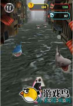 一部B级灾难片《鲨卷风》曾经让不少影迷印象深刻,荒诞的情节,搞笑的剧情,一场奇怪的龙卷风带着无数的鲨鱼如同下雨一般从天而降,袭击城市中的人类。而今年《鲨卷风2》也即将上映,作为电影的预热游戏《鲨卷风:视觉游戏》(Sharknado: The Video Game)则率先上架了,舞台也从洛杉矶搬到了纽约,玩家将与鲨鱼在纽约的曼哈顿街头小巷展开生死追逐,或是挥起武器与鲨鱼拼杀,甚至还可以骑上鲨鱼雨其他的鲨鱼进行狂飙,听起来相当的狂野。 抛开那狗血的剧情,3D的游戏画面制作得还是比较出彩,镜头也比较的到位,很有电影的感觉。在细节上也把握得比较到细致,远处的龙卷风看上去非常的震撼,甚至能看到风暴中的鲨鱼在转动,而出场的鲨鱼种类也很多,什么虎鲨、鲸鲨、大白鲨都有,基本上比较著名的鲨鱼都出场了。比起其他跑酷游戏单调的场景,本作的场景切换频率比较高,令整个奔跑过程不会令人感到单调乏味,人物的动作也都还算流畅,没有任何的延迟感。游戏的音乐不知是否电影原声加工,带上耳机一种好莱坞大片的临场效果还是显得游戏非常的紧张。 游戏以无尽跑酷的操作方式进行,至于玩法与神庙逃亡差不多,都以第三人称追尾的视角进行三条路线的奔跑,左右快速滑动可以更换跑动路线,从而躲避从天而降的鲨鱼,抑或者各种各样的障碍,同时还要拾取路上的金币,还是非常的简单无脑。而游戏拾取到某些道具后会进入另一个场景模式之中,例如拾取到滑板之后,将会进入急速冲浪模式,需要在水上进行冲浪的方式,躲避游来的鲨鱼,该模式的节奏也比普通的奔跑模式快乐不知多少倍。 要说游戏的特点,不得不提它的武器道具,场景的道路上会不时出现武器以供玩家拾取,只要手握武器,面对这群凶残的鲨鱼也就不比害怕了,操起家伙直接向鲨鱼身上冲去,管它什么鲨鱼,都手起刀落直接干掉。不过武器的使用次数是有限的,基本杀掉那么四五只鲨鱼之后武器就会消失,主角又会再次回归到徒手奔跑的模式当中。游戏中出现的武器都能在商店中购买,种类的不同所需要花费的金币也不同,最高级别的武器可是要花掉6000个金币呢。想买它就慢慢攒钱吧。 游戏中的鲨鱼还会进行升级,玩家在关卡中被哪一种鲨鱼杀死,游戏结束后该种鲨鱼就会获得经验,在升级之后就会变得更加的危险。而游戏的难度并不算是太难,只要反应和判断力足够好,基本上都可以走上很长的一段距离,当然前提还是得经常主要从天上掉下来的鲨鱼,别一不小心就跑到鲨鱼的嘴里了。 总的来说,作为一款电影预热游戏,本作还算可以,并没有因为电影的附带作品而粗制滥造,但要说对不对得起该价钱那就另说,至少还是把电影的某些场面移植到了游戏中,也能大致的知道电影的剧情脉络,至于玩家喜欢不喜欢那么一款游戏作品,那就仁者见仁智者见智了。 |
