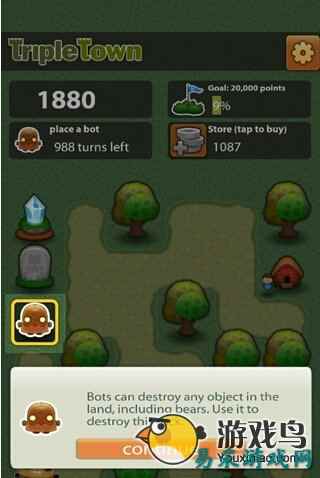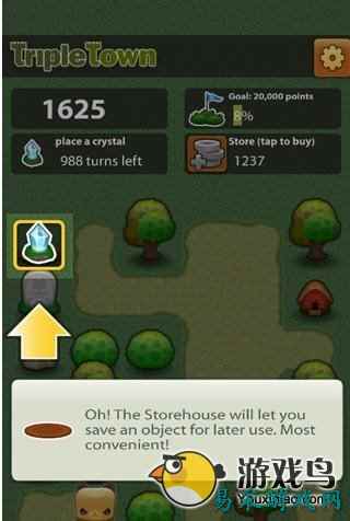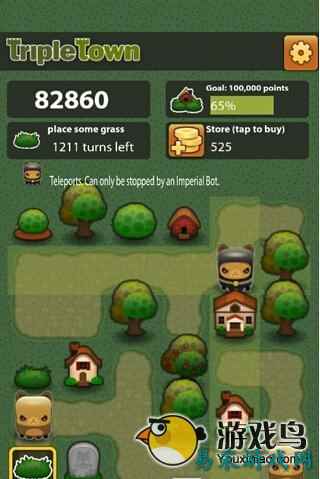 《三重小镇》是一款休闲类游戏,游戏一经推出便迅速在全球手游玩家中风靡开来,那这到底是一款怎样的游戏呢?一起里看一下。 #_2455924_# 难以阻止的忍者熊 说到了帝国机器人,我们突然想起来了是不知道哪儿的帝国派我们来开辟小镇的,可是总不能把我们丢在荒地就不管了,好歹得来点儿王之光辉普照一下吧。于是,游戏提供了几个能帮助我们做出更优决策的机制。 首先是地图左上角的储存间。当你被分配到一个强力的道具或者暂时不想放下的地图元素的时候,就可以先将它寄放在储存间,便于之后更好的情况下使用。你也可以利用储存间来让讨厌的忍者熊直到你抽到去除的时候再登场。 便利的储存间 接下来是帝国发放的机器人。这个机器人可以毁坏地图上的一切元素。当你不小心下错了一个元素时,砸了;当你发现有块完美的地被已有元素占据时,砸了;当迫不得已把熊堵死造出一块孤立的墓碑时,砸了。各种各样的用法很多也很灵活,但是最常用的还是砸掉地图上的石头和讨厌的忍者熊,只要注意在忍者熊进入封锁区时砸就对了。 摧毁一切的破坏者三重小镇游戏评测 然后是加快合成进程的水晶。有水晶的话,只要地图上有两个元素就能放下水晶合成一个高级元素了,也就相当于一个万能元素。需要注意的是如果没凑齐两个元素空放水晶的话,不但不会合成,反而会在地图上留下一块石头,不用机器人砸掉的话就会一直占据那一块土地。 万能合成水晶,灵活使用事半功倍 最后就是游戏内的商店了。这一步的元素毫无用处,储存间又存放着更棒的元素怎么办?别急,掏钱在商店买一个道具缓一回合就行了。此外,游戏还限制了每次的回合数,一次内购可获得无限回合,同时解锁更多地图模式。 商店能够买道具,但是库存有限,补仓速度很慢,慎重使用 说了这么多,相信大家已经明白这款看似轻松的游戏背后所隐藏的脑力激荡是多么复杂精妙了吧。正是这样严谨又传统的策略元素,造就了三重小镇的百玩不厌。 可爱的画风和有趣的音效也是不可或缺的 从矮小圆润的灌木丛到玲珑精致的城堡,从蹦蹦跳跳的小人到眨眼卖萌的大熊,游戏中的各个单元无不透露出轻松可爱的风格。交织在游戏过程中的各种可爱音效也使这款游戏让人爱不释手。 三重小镇就是这样一款集轻松可爱的外在和严谨有趣的内涵与一体的佳作。 #_2455924_# |