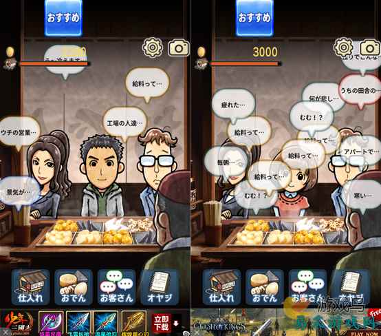 曾推出过《昭和杂货店物语》、《昭和茶屋物语》等一系列治愈系放置休闲游戏的开发商 GAGEX 在六月份又出品了一款新作。继复古的昭和时代小店的催泪故事之后,游戏的舞台来到一间小小的关东煮推车店,接待夜晚还在都市徘徊的客人们,听他们吐吐苦水,说说自己的烦心事,透过一个个看似琐碎无趣的故事,慢慢地发展成为生活中不可思议的奇迹,这就是《关东煮屋 人情物语(おでん屋 人情物?)》。 GAGEX 这家手游厂商的立社宗旨是“开发让人感动,充满童趣和人间温情的游戏”,所以作品取向都为人际之间的关系和温馨励志为主轴,不过他们家的游戏很多只有日语,中文版的推出非常缓慢(只有《昭和杂货店物语》在港台区有中文版),《关东煮屋 人情物语》也是日文版,国内玩家由于语言关系只有少数人喜欢玩,不过安卓版是有汉化的。 操作玩法★★★★ 游戏中玩家扮演的是关东煮小摊的老板,每天晚上推着小车出来做生意,这种推车小摊在日本一些街头还是满常见的,小摊空间有限,用一席帘布隔开外界和屋里,让客人可以安心的喝点小酒,吃点宵夜。来小摊的大多数是忙碌一天的上班族,也有家庭主妇和不得志的青年,酒过三巡之后就开始向店家发牢骚,而你的任务,自然就是听听他们的牢骚。 客人的牢骚会变成头顶上的气泡,关于各种各样的话题,包括恋爱、社会、自己、工作、家庭、其他,手指点住气泡往下拖,气泡就会飞到老板那边然后消失掉,代表他倾听了这些牢骚。消除的气泡越多,卖出去的关东煮也越多。 仔细看的话会发现不同话题的牢骚,气泡边框会有不同的颜色来代表,比如恋爱是粉红色,自己是绿色,工作是蓝色等等。边框是彩虹色的气泡表示对于客人来说是“发自内心”的深刻发言,他正在倾吐自己内心的秘密。如果是一团黑乎乎的气泡,则表示客人的牢骚被搁置不理超过 12 个小时,这样的气泡无法增加营业额哦。 听了客人的牢骚之后,这位客人的“熟客度”就会上升,熟客度越高,他在你店里停留的时间久越长。牢骚会增加新的话题,也会越来越深刻。 不同的客人喜欢不同的关东煮,画面左上有你现在赚到的钱和关东煮的剩余数量,大概几个小时就会卖完,如果没有关东煮客人就不会来和比发牢骚了,所以需要进货。 游戏界面下方的选项分别是关东煮进货、关东煮的种类、客人详情和老板大叔的日记。客人在某个时段会出现一些对于自己很重要的事件,大叔听到之后就记在了日记本上,“今天,那位客人又来店里了,他好像非常想念某个人……”之类之类的,大叔也会把自己的感想加在日记后面。 可玩性★★★★ 客人们的身份很有趣,有OL女性,有刚刚开始步入工作环境的年轻人,有抱怨员工的老板,有抱怨老板的员工,有夜店小/姐,有家庭主妇,有从乡下来到城市里的女孩……其实出现在店里的这些客人,很多都相互认识,基本都有联系,这就是游戏隐藏的“人际”。 随着客人停留时间的增加,客人的面部表情会出现变化,吐露更多的信息,从而开启每个人的结局。而见证过这么多别人的故事,倾听过这么多别人的心声,关东煮老板自己,又有着怎样的经历?如何面对生活的压力呢? 综合评分★★★★ 这是一款很简单的游戏,所需要的只是时间和耐心,玩家可以在游戏中看到生活中各类人的苦恼、迷惘,也能看到奋斗、舍得、不抛弃不放弃。这个昏黄灯光下的关东煮摊,就像大千社会的一个缩影。看得透世间百态,看不透人情冷暖,每个人心中都隐藏着一些想法。平时无法吐露的无关紧要的不忿与不满,稍不留神就想对他人倾述的痛苦的经历。绝对无法告知他人的秘密,宝石一般珍贵的记忆。每个人都有自己的人生,而人生只能靠自己把握。 |