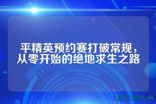 Q: 什么是平精英预约赛? A: 平精英预约赛是一项由腾讯游戏发布的绝地求生比赛。该比赛旨在为广大玩家提供一个公平、公正、公开的比赛平台,让玩家们能够享受到高品质的游戏体验。比赛中,参赛者需要在规定的时间内完成任务,完成任务的玩家将有机会获得奖励。