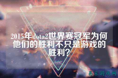 2015年dota2世界赛冠军为何他们的胜利不只是游戏的胜利?