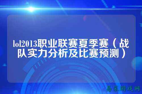 lol2013职业联赛夏季赛(战队实力分析及比赛预测)