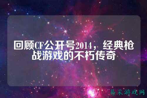 介绍CF公开号2014 CF公开号2014是经典的枪战游戏,于2014年上线。它是CF系列游戏的一个版本,也是CF系列中最受欢迎的版本之一。CF公开号2014具有高画质、流畅的游戏体验和多样化的游戏模式,吸引了大量的玩家加入。