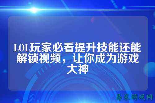 LOL玩家必看提升技能还能解锁视频,让你成为游戏大神