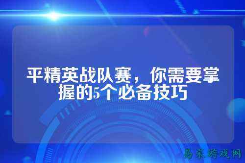 Q:什么是平精英战队赛? A:平精英战队赛是一款多人在线竞技游戏,玩家可以组成战队进行比赛,游戏中需要掌握各种技巧才能获得胜利。