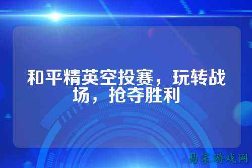 和平精英是一款备受欢迎的手机游戏,吸引了无数玩家的关注。其中,空投赛是游戏中最受欢迎的玩法之一,让玩家们在战场上互相竞争,争夺胜利。今天,我们就来探讨如何玩转战场,抢夺胜利。 一、了解空投赛规则