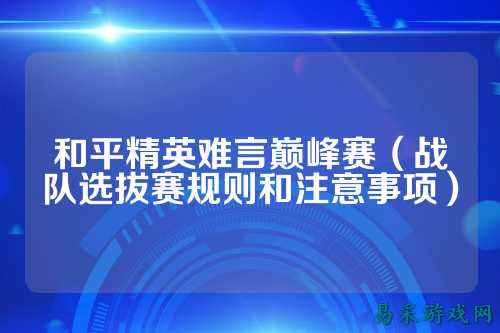 和平精英难言巅峰赛(战队选拔赛规则和注意事项)