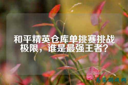 和平精英仓库单挑赛是一项极具挑战性的比赛,旨在考验选手的操作技巧和反应能力,寻找最强王者。该比赛由和平精英官方主办,每年都会举办多场比赛,吸引了大量玩家的参与和观赏。 仓库单挑赛的比赛地图为仓库,比赛模式为单人对战。比赛开始后,选手将被分配到不同的区域,每个区域都有一定的武器和弹药供选手选择。比赛时间为10分钟,选手要在规定时间内击败尽可能多的对手,最终获得最高的得分。