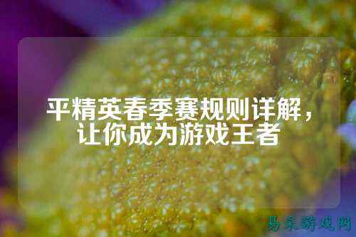 摘要:平精英是一款热门的多人在线游戏,每年都会举办春季赛,吸引了大量玩家的参与。本文将为大家介绍平精英春季赛的规则,帮助大家更好地参与比赛,成为游戏王者。 1.比赛时间