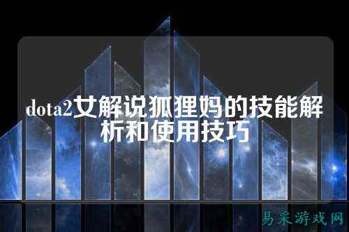 【dota2女解说】狐狸妈的技能解析和使用技巧 作为一名dota2玩家,你一定不会陌生狐狸妈这个英雄。狐狸妈是一位极具灵活性和机动性的英雄,她的技能可以让她在战斗中快速移动和闪避敌人的攻击,同时也有不错的输出和控制能力。下面我们就来看看狐狸妈的技能解析和使用技巧。