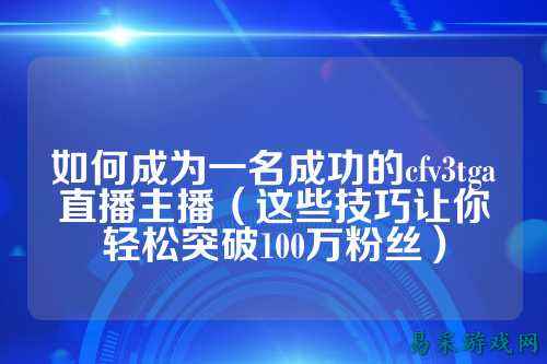 如何成为一名成功的cfv3tga直播主播(这些技巧让你轻松突破100万粉丝)