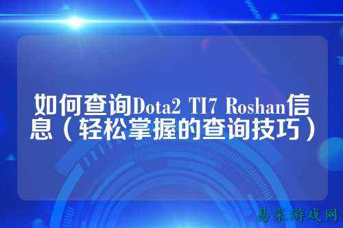 如何查询Dota2 TI7 Roshan信息(轻松掌握的查询技巧)