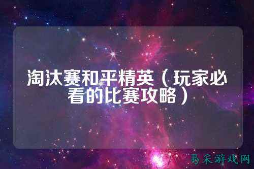 淘汰赛和平精英(玩家必看的比赛攻略)