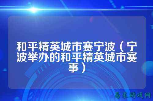 问:什么是和平精英城市赛宁波? 答:和平精英城市赛宁波是一项由和平精英游戏主办方腾讯游戏举办的电竞赛事,旨在为玩家提供一个展示实力和交流经验的平台。本次比赛在宁波市举办。