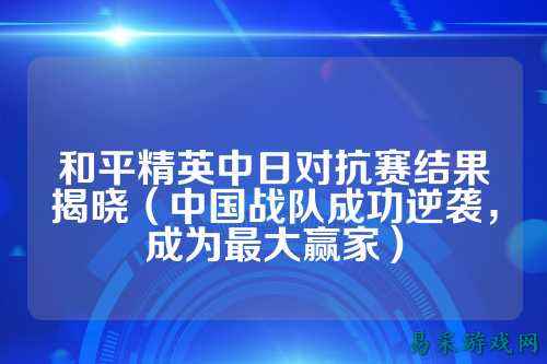 和平精英中日对抗赛结果揭晓(中国战队成功逆袭,成为最大赢家)