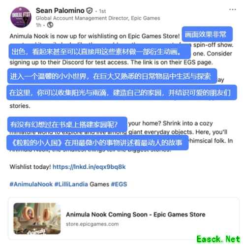 IGN、PlayStation、Epic Games等全球顶级的游戏媒体、平台更是集体化身“自来水”,主动为这款中国游戏打call。Epic商店负责人更是亲自下场安利,在个人社交媒体上对《粒粒的小人国》给出了极高的评价,这波真是“全球通吃”啊!
