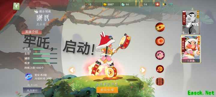 在《闹闹天宫》中,二郎神同样与他的cp孙悟空一样被设定为近战战士,很显然,策划们也希望看到这两位相爱相杀的局面呢。相对于孙悟空,二郎神在能力值上略有不足,但难度却反而要高,这也说明三郎神是一个易入门却上限颇高的潜力英雄!
