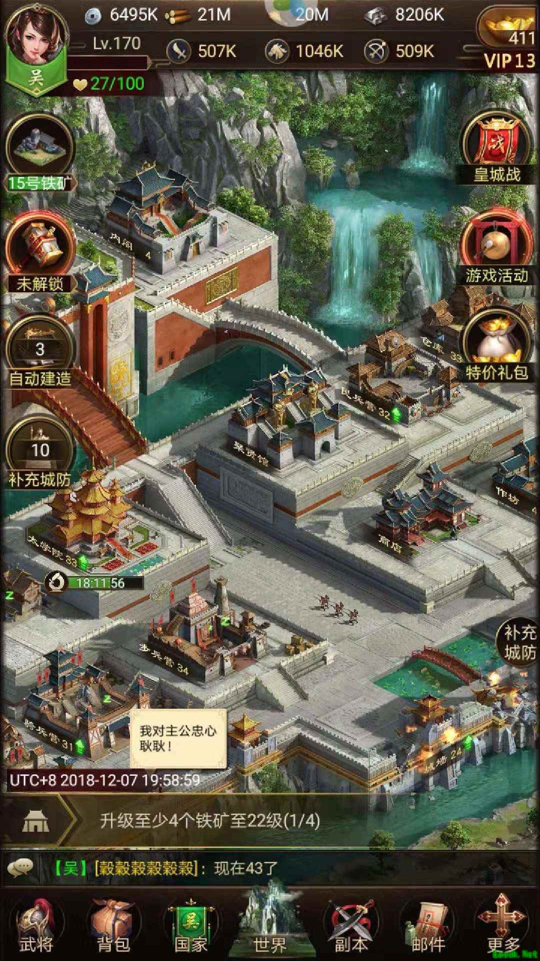 正所谓“官官相扣”,主公的等级跟内城官府挂钩,而太学院的等级也跟官府紧密相连。所以当官府提升等级时,必将影响其它建筑的提升建造。而建筑方面的升级,如果主公白天有时间挂机,也可以优先建造。因为所有建筑均为等级越高升级时长越多,所以没必要浪费白天做其它任务的时间来完成这个耗费时间的建筑升级。