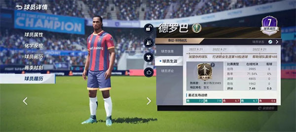 5、以下是开服以来德罗巴的生涯表现:累计参加在线对决3985次,进球4805个、助攻1962次,场均得分7.49。多以经理人为主,总体看算是不错的评价。