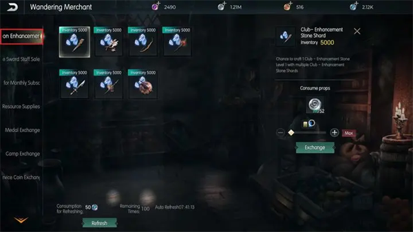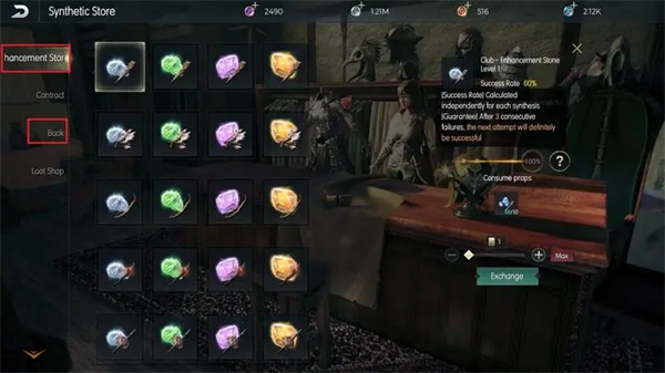 但更简单的方法是从合成商店购买一些,在同一家商店中,我们还可以交换增强石。