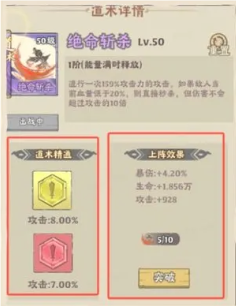法宝每升一级可以提升道行,解锁组合内的法宝激活羁绊属性,与灵将的羁绊不同,法宝的共鸣可以伴随着法宝的等级来提升共鸣的属性每次升级也可以提升道行。