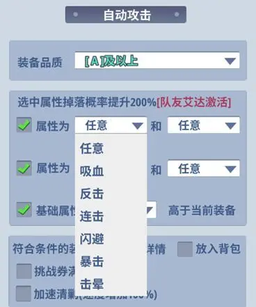 *配图请以游戏内实际为准对于走出新手期的幸存者,已经清楚自己想要什么样的词条属性,此时可以在自动攻击处进行对应设置,优先挑选自己想要的词条属性。