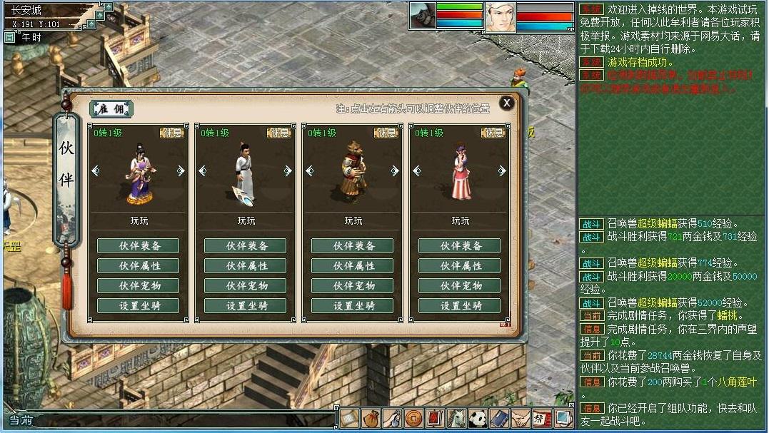 进入游戏,可以看到游戏是配有假人的,领取一只宠物便可开始大话之旅。