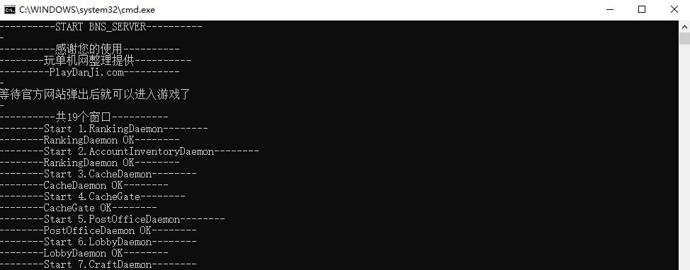 (自动执行窗口,需要打开19个窗口,最后一步会打开官网,看到打开官网就可以登陆游戏了,大概需要3分钟)5.双击: ‘[4]启动游戏.bat’