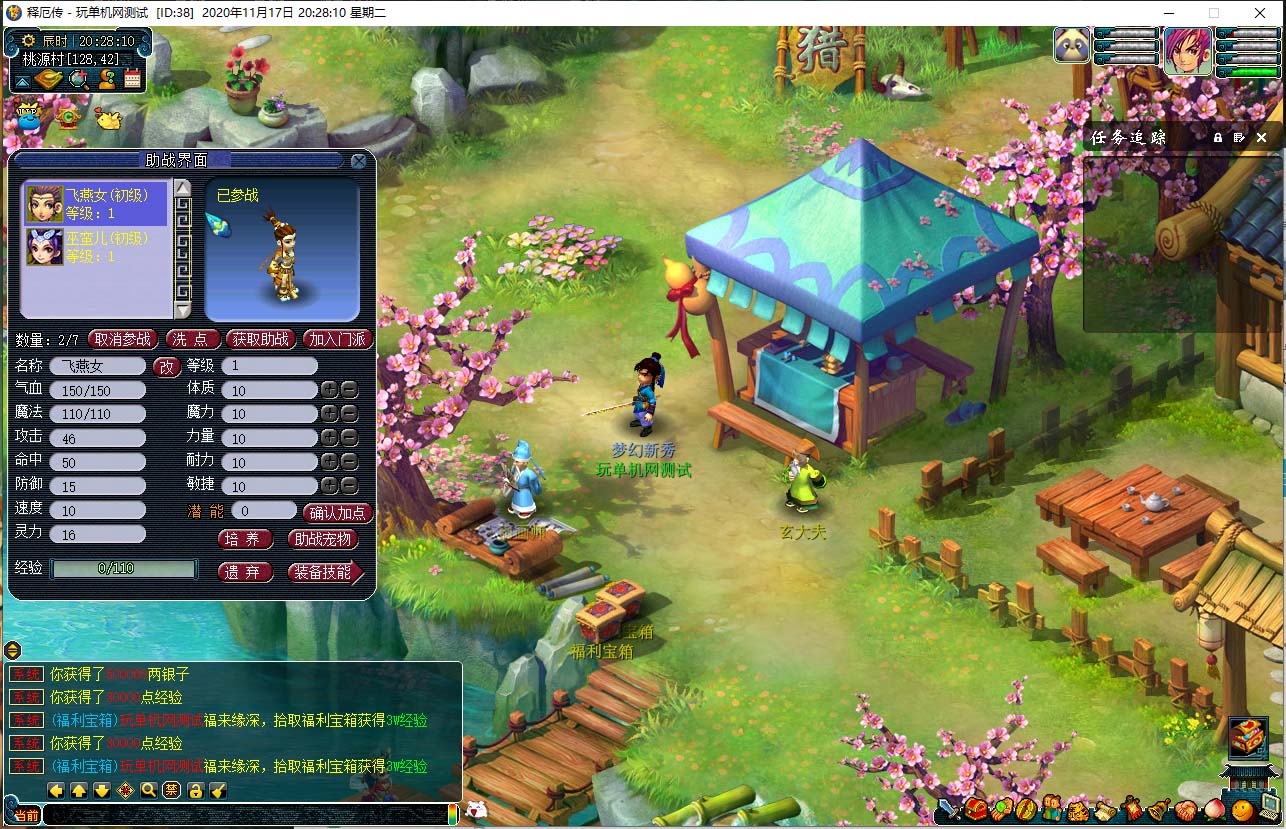 只要将自己设置为队长就可以让假人参与战斗,可以给假人拜师,学技能换装备,换宠物。
