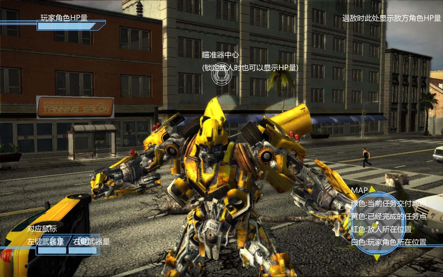 一开始你操作的是大黄蜂,到达指定地点后,要求消灭全部敌人。触发任务后会有一批敌人,消灭后,敌人从天而降。简单的格斗就可以轻松消灭全部敌人,当敌人防御时可以投掷物体或用格斗。