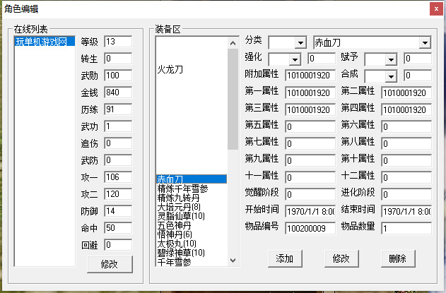 修改装备和属性:可以任意添加装备无需重新登录,但是修改属性需要重新登录,修改NPC则需要重启客户端。