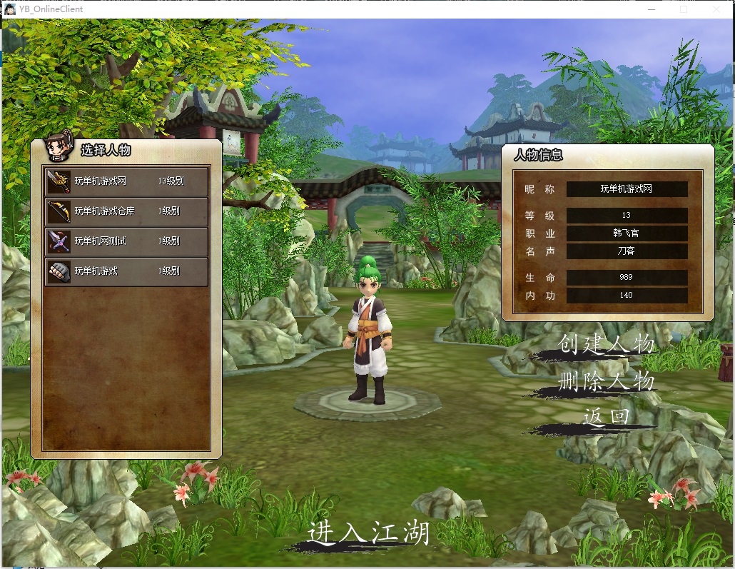 选择人物界面,可以建立最多4个角色。