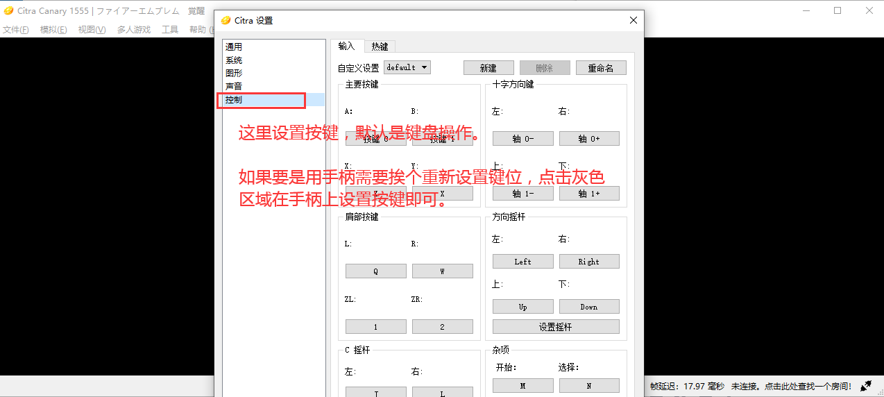 默认是键盘输入,基础按键是A(确定) S(取消) Z X 和M(Star键) 以及方向键
