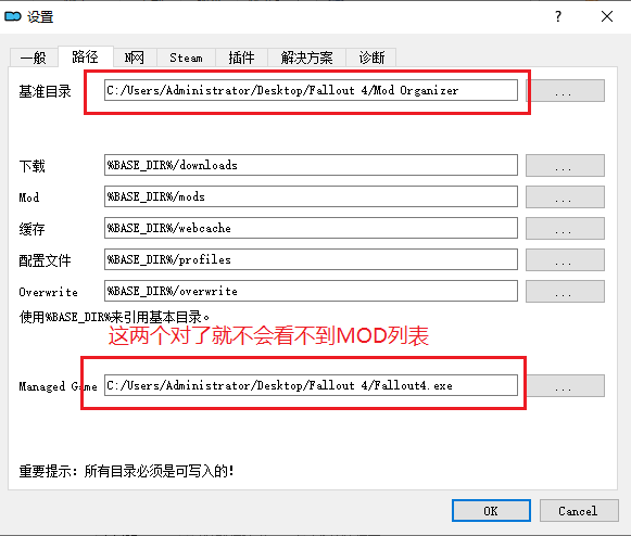 这里的配置决定你是否可以正确打开MOD管理器,如果出错就按照图示填写到你自己的路径就可以了