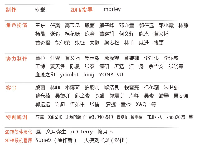 这款游戏由中国的一群游戏爱好者制作而成,开发软件为2DFM。 游戏中全程采用中国语配音(普通话+部分地区方言)、全程中文字幕。游戏中包含了36个场景、24位可选角色以及15位不可选角色。该游戏制作游戏采集的照片高达1 万8千张,实际用在游戏中的大约为1万张。