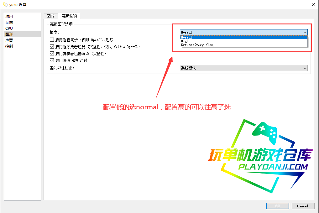 在高级选项中可以通过设置图像质量来调整画面效果,效果越好对配置要求越高
