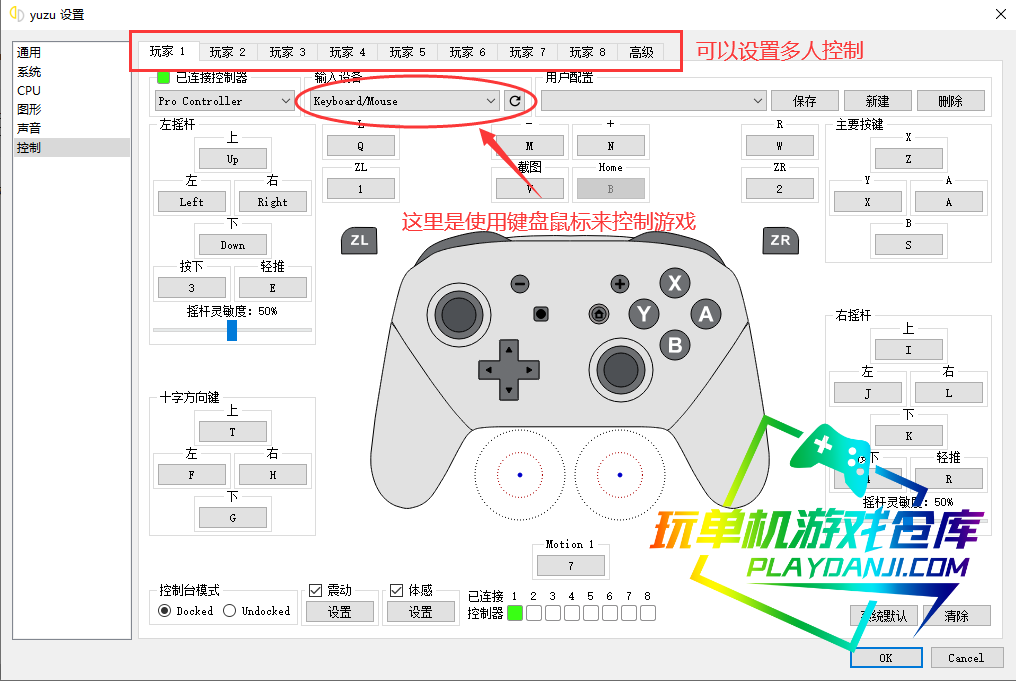 默认设置为键鼠控制,同时支持多人游玩(但需要游戏支持,同时使用不同的输入设备)