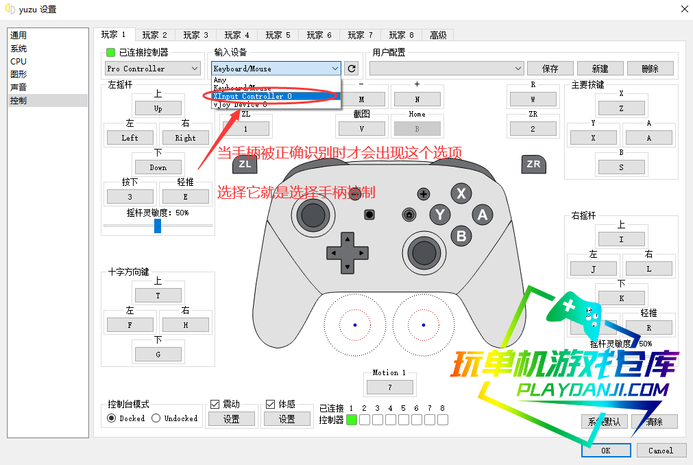 如图所示的是手柄控制方式,当手柄被模拟器正确识别的时候才会显示对应选项,未显示则无法使用手柄